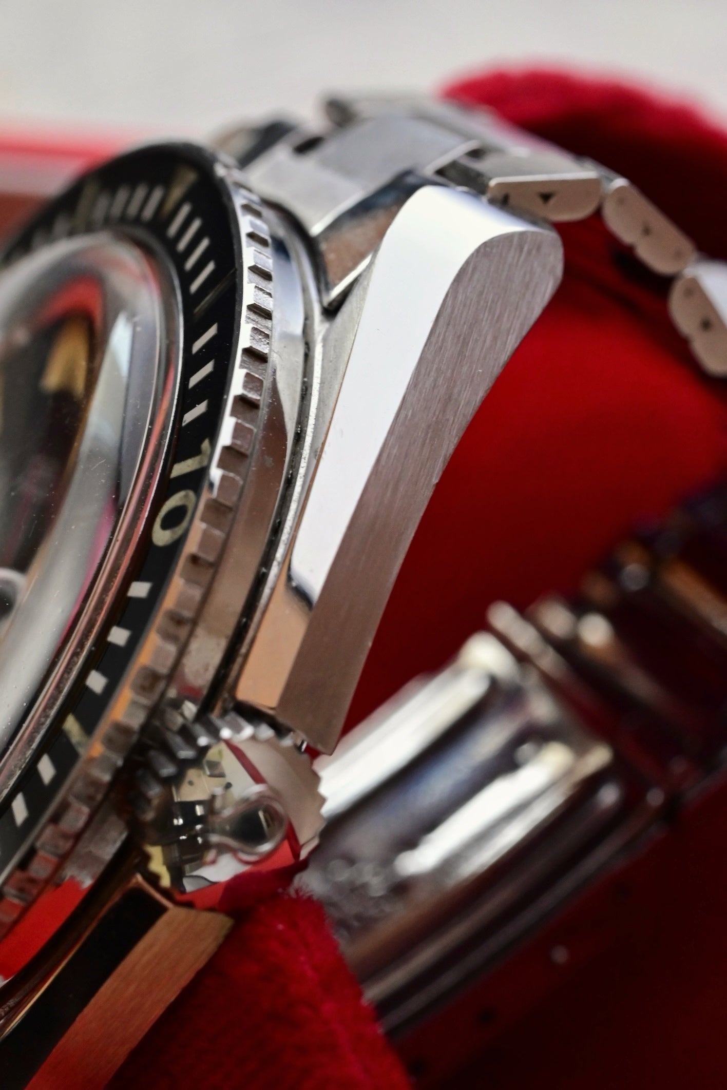 Insert d'origine réalisé en résine acrylique avec un repère triangulaire luminescent à 0/60, des chiffres luminescents de dix en dix et des index peints